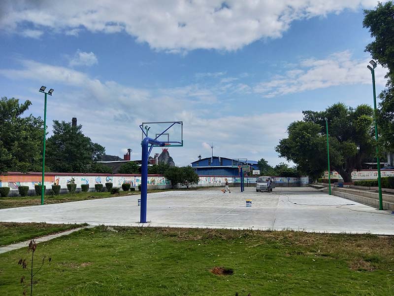 5、籃圈:采用直徑為20mm的實(shí)心圓鋼,配2只可調(diào)節(jié)加強(qiáng)彈簧.籃圈上沿距地面高度:3050mm, 內(nèi)沿?А12段均勻分布,內(nèi)穿鋼絲,配尼龍籃網(wǎng)