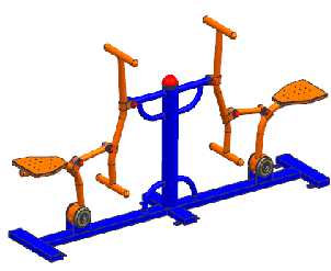 2、雙人騎馬機支架立柱采用φ114×3.0mm焊管及100*40*3標準槽鋼焊接而成。坐板用2.75鋼板沖壓成型。轉(zhuǎn)軸直徑φ30mm。所有管材壁厚為3.0mm,耳片、連接片壁厚為5mm。轉(zhuǎn)動部分加有限位結(jié)構(gòu)。手及手指剪切、擠壓和卡夾活動部件與鄰近的活動部件或固定部件之間的不距離不小60mm。腳或腿的卡夾活動部件底面與地面的間距大于80mm。