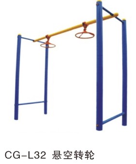 2、懸空轉(zhuǎn)輪主立柱管應為φ114×3mm標準鋼管。頂部裝有塑膠防水蓋。主要承載橫梁:φ60*3mm。手抓部位采用φ32鋼管彎成圓盤焊接而成,采用國標軸承與管材進行連接并用卡簧固定和防盜螺桿螺帽上緊。產(chǎn)品所有的連接結構具有防盜、防銹、防松措施。