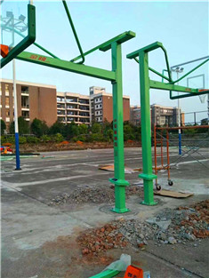 柳州成冠體育箱體籃球架的箱體為整個籃球架的重心,內部含有配重,箱體的長度一般為1.6米以上,根據籃球架的臂長確認安裝的位置,籃板距離底線的長度為1.2米,伸臂越長,所需要的后置區(qū)域越大,一般籃球架的伸臂長度為1.8米,也就是說,箱體距離底線的距離為600mm,場地的寬度要足夠安裝。室內籃球架又有可升降之分,可升降籃球架有液壓籃球架和機械籃球架之分,可根據自己的實際情況選購。地埋式圓管籃球架的尺寸和怎么安裝圓管籃球架的尺寸:標準 ,高:3.05米,安裝的時候很好安裝啊,分開安裝,先在地上挖一個坑,安裝籃球架,然后把土添上,然后安裝籃板,籃圈,但是安裝鋼化玻璃籃板時要注意點,否則會受力不均鋼化玻璃籃板破裂,后調試,然后把所有的連接點用膠帶封住。首先要挖出一個70*80的坑,在籃球架安裝好,將混凝土填充進去?;@球架的邊線離端線大概是60厘米,在籃板,籃球架,籃圈三點的固定上用的是4條M12*60的螺絲,在支住鋼化玻璃籃板時要注意點,要防止受力不均導致鋼化玻璃籃板破裂。